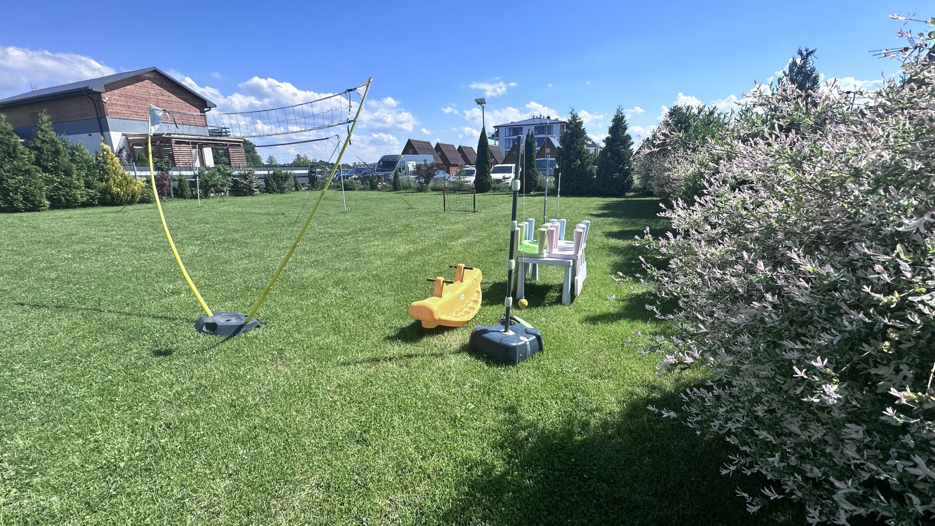 Mini boisko do gier zespołowych na drugiej części placu zabaw ( siatka , bramka do piłki i nożnej i inne zabawki na tej części ) użytkowanie ich powinno odbywać się zgodnie z ich przeznaczeniem.