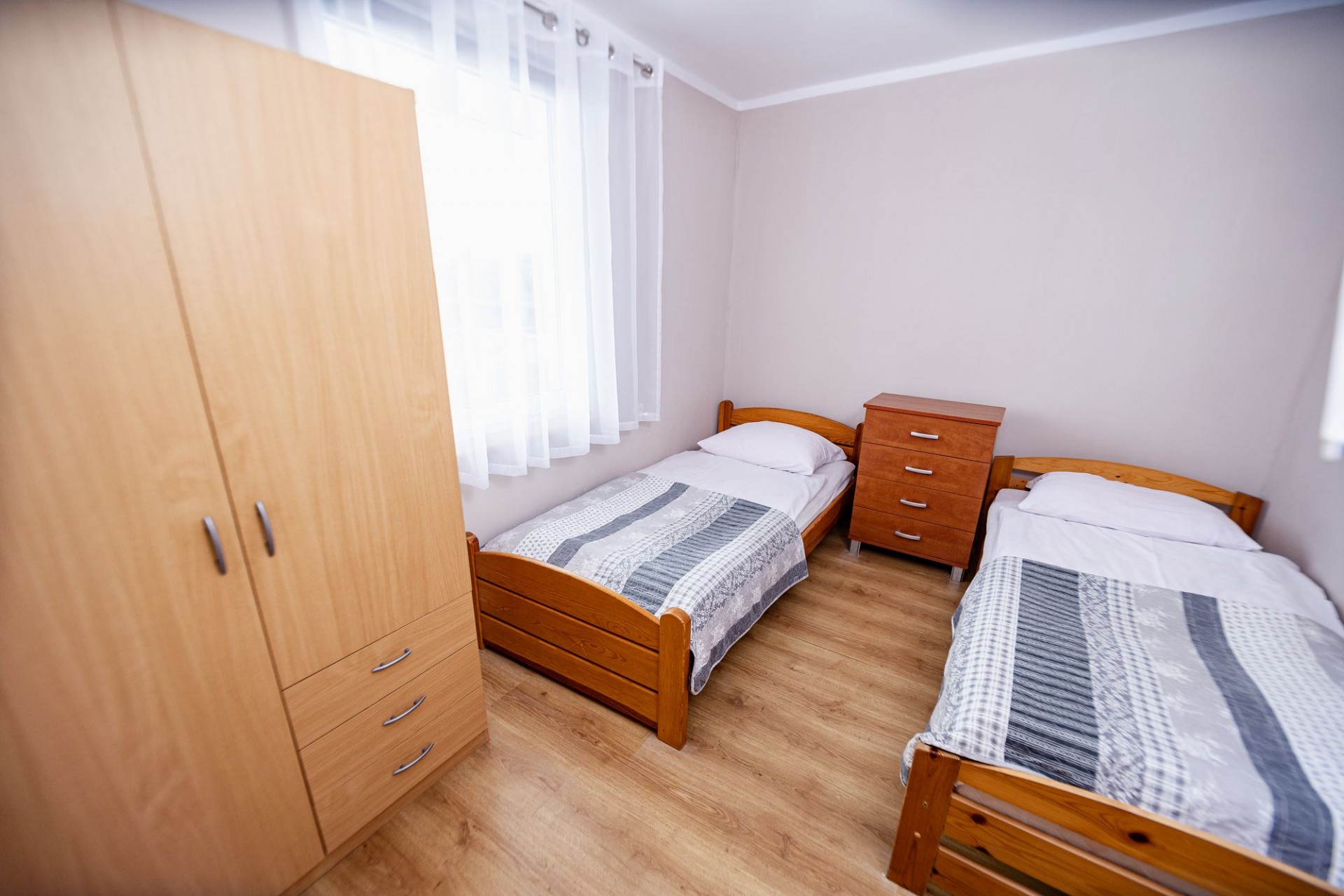 - Pokój mały - 2 łózka, komoda, sprzęt plażowy, komplet pościeli