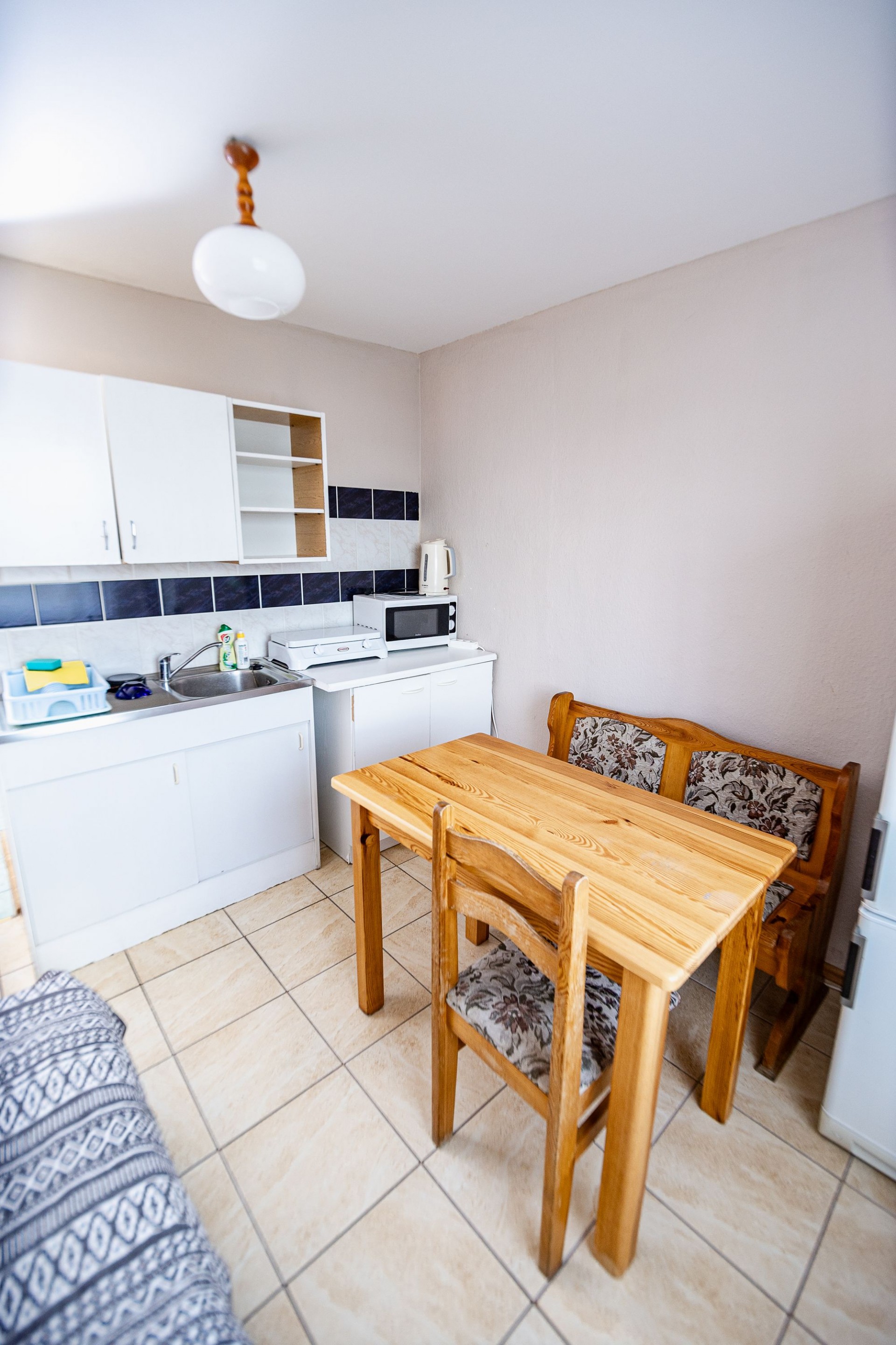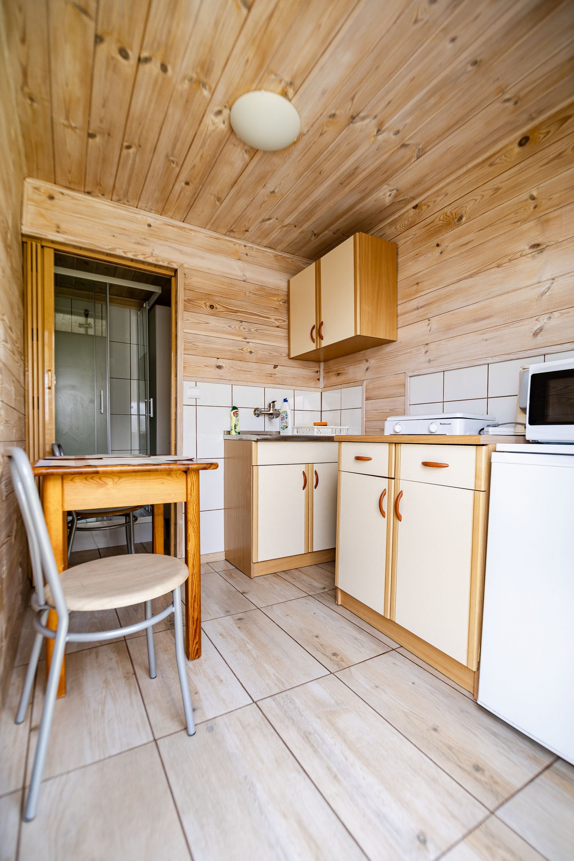 - Aneks kuchenny - kuchenka gazowa, czajnik, mikrofala, lodówka, naczynia, szklanki, sztućce, przybory kuchenne