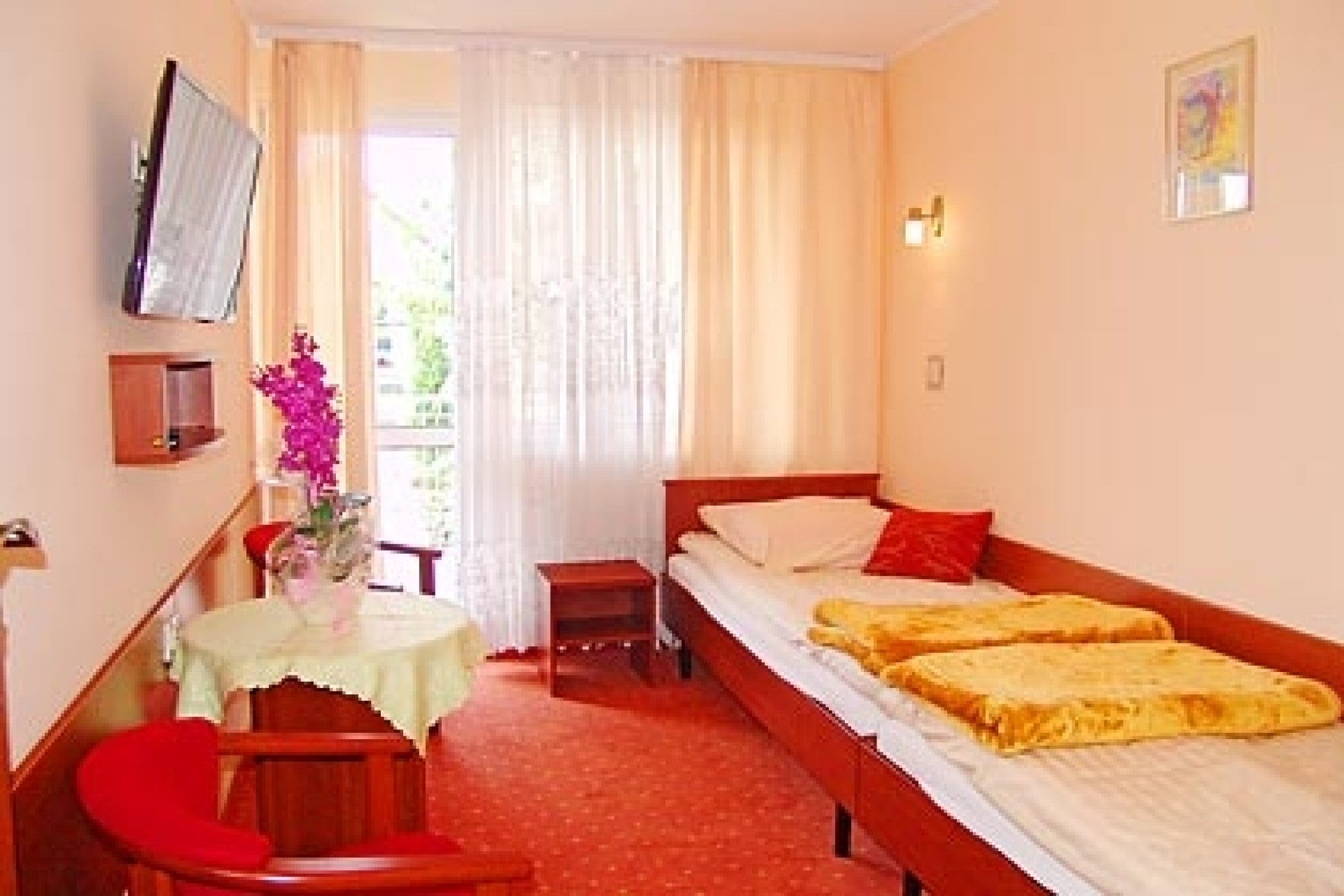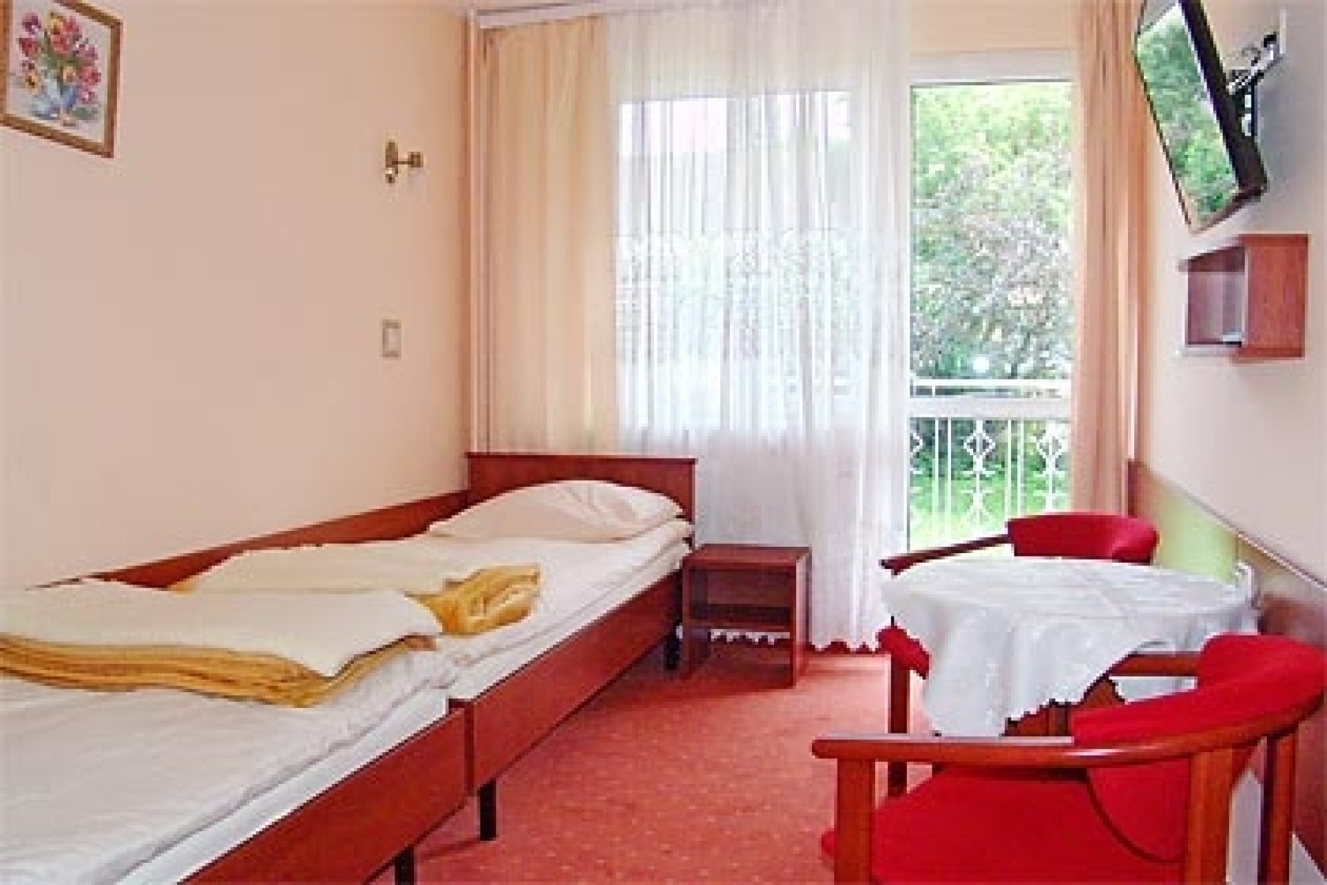 Dysponujemy pokojami dwuosobowymi typu „studio”, z balkonami typu „loggia” i pełnym węzłem sanitarnym.