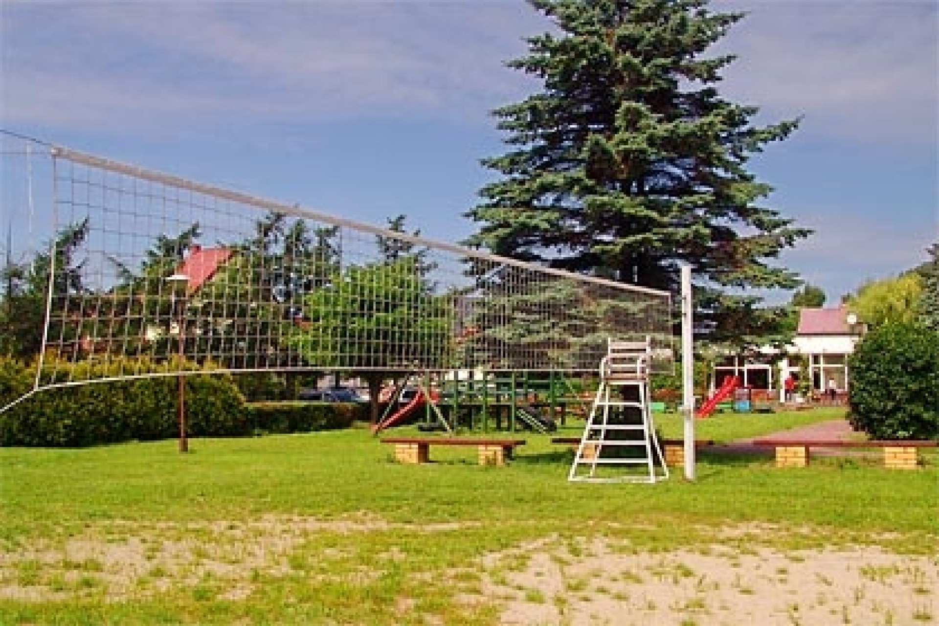 Ośrodek dysponuje stołówką, kawiarnią, salą gimnastyczną, salą telewizyjną, bilardem, boiskami sportowymi (siatkówka i koszykówka), kortem tenisowym, sauną, placem zabaw dla dzieci oraz parkingiem.