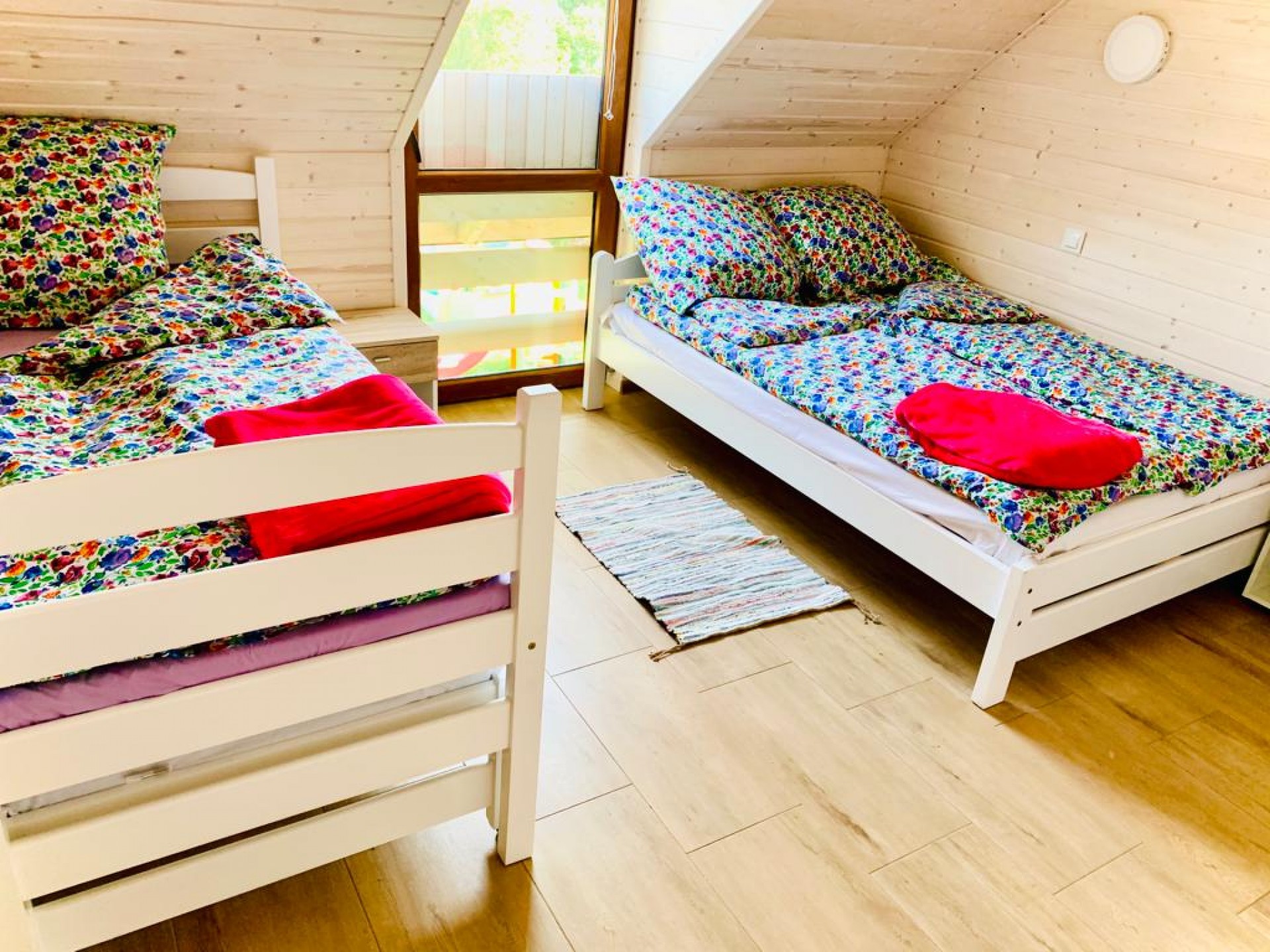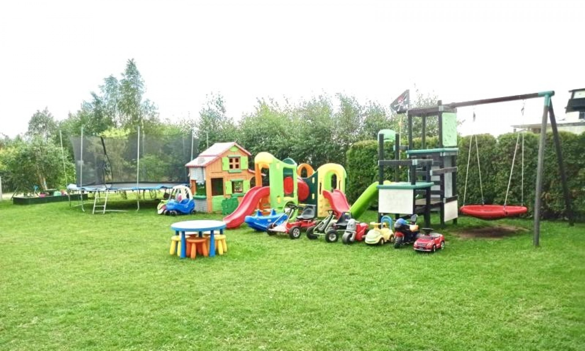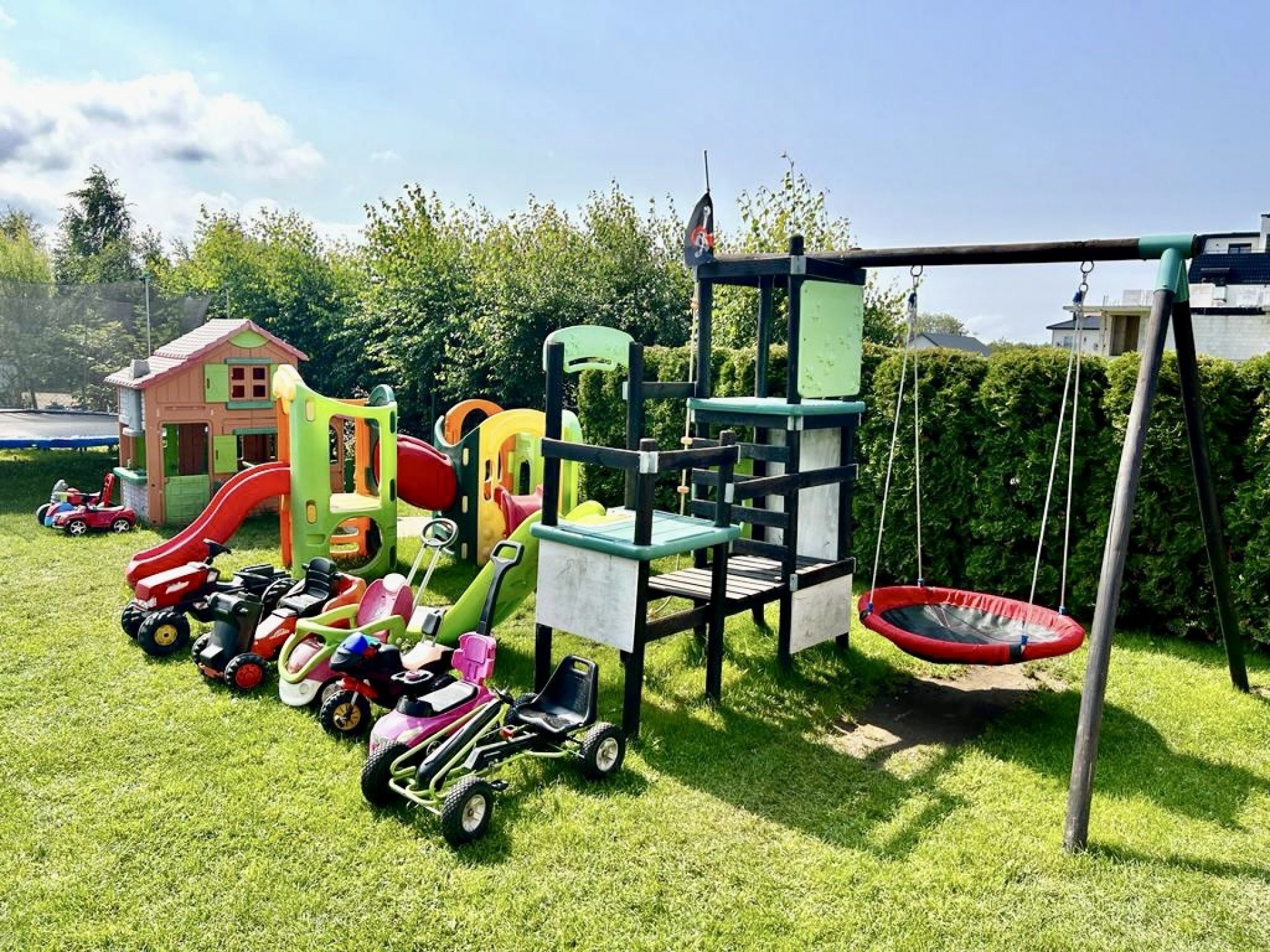 Dla najmłodszych Gości przygotowaliśmy kolorowy plac zabaw umieściliśmy go tak żebyście Państwo widzieli bawiące się dzieci z każdego domku, łóżeczka turystyczne, stoliki do karmienia, wanienkę do kąpieli, dużo zabawek.Parking dla aut naszych Gości jest bezpłatny