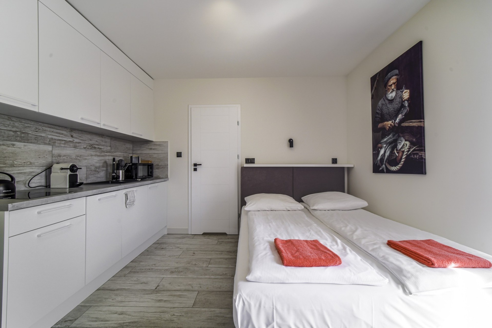 Apartamenty 4-osobowe mają powierzchnie 30 m2, na którą składa się sypialnia z łóżkiem małżeńskim. Salon z w pełni wyposażoną kuchnią (lodówka, płyta indukcyjna, zmywarka, czajnik, mikrofala, komplet naczyń, garnków i sztućców dla 4 osób). Duża łazienka z prysznicem. W salonie znajduje się rozkładana dwuosobowa sofa. Każdy apartament posiada duży balkon z widokiem na basen i plac zabaw. Na wyposażeniu apartamentów jest komplet pościeli i ręczników.